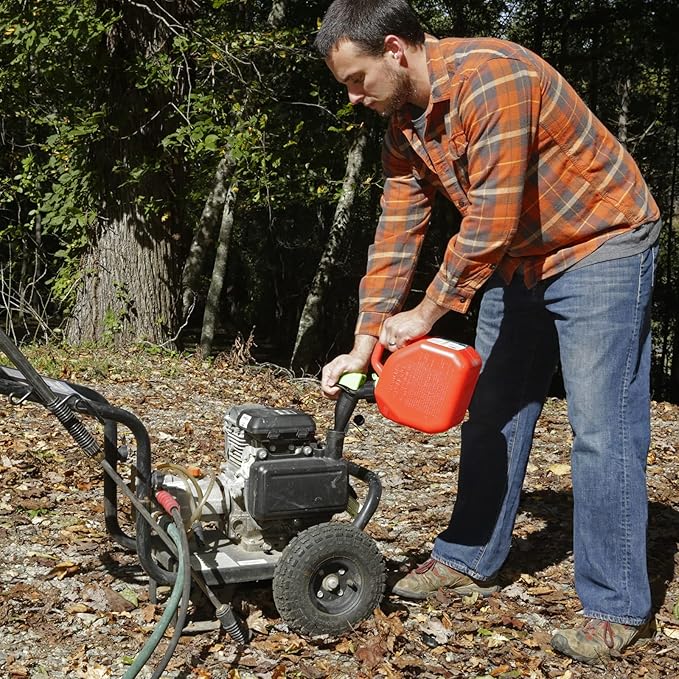 - EASY TO POUR GAS CAN – 1-gallon fuel container for easy refilling of lawnmowers, chainsaws, yard tools, recreational vehicles, ATVs, motorcycles, and other gas-powered equipment