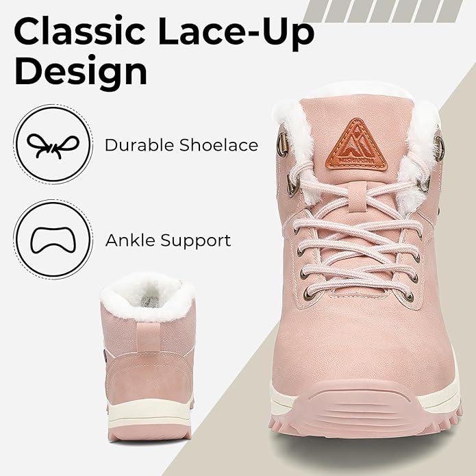 - Warm Fleece Winter Boots for Men: Fully lined with ultra-soft fleece, these insulated mens snow boots trap heat to keep feet warm in cold temperatures. Whether you're hiking, camping, or commuting, the warm winter hiking boots are built for comfort in cold weather