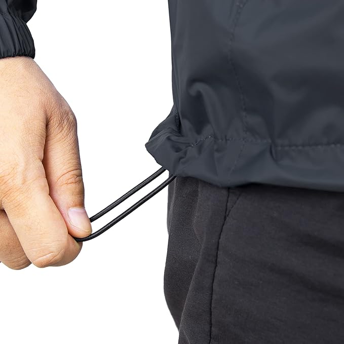 - 【Unique Design】Lightweight lite rain jacket elastic cuffs prevent the rain drops to the cuffs; Adjustable drawcord hood to prevent yourself from being wet; The hem contains elastic rope for warmth and keep you dry. Suitable for casual wear, outdoor sports, outdoor work, traveling, cycling, hiking, climbing, fishing, camping, hunting.