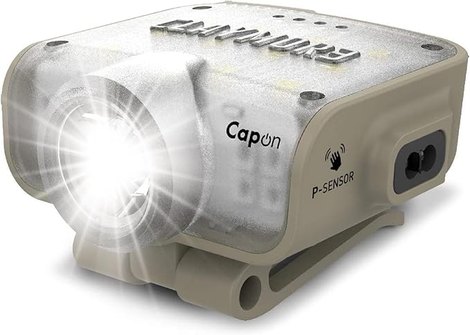 Claymore Capon 80C (Tan) - LED Rechargeable Clip-On Cap Headlamp, Lightweight Hat Light for Camping, Running, Emergency & Industrial Use, Waterproof, Hands-Free Sensor, 45 Hours Battery Life.