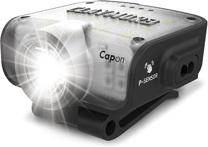 Claymore Capon 80C (Black) - LED Rechargeable Clip-On Cap Headlamp, Lightweight Hat Light for Camping, Running, Emergency & Industrial Use, Waterproof, Hands-Free Sensor, 45 Hours Battery Life.