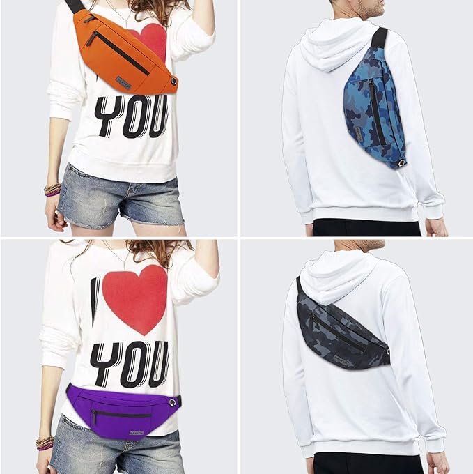 - ▶ Changeable Style Fanny Pack,Many Ways to Wear — Since the comfortable long strap is widely adjustable for most waist size(20” - 50”).There are many ways to wear this fanny pack - You can wear it in front of your waist, back on your hip, slant across your chest or over You shoulder.Perfect for various occasions.