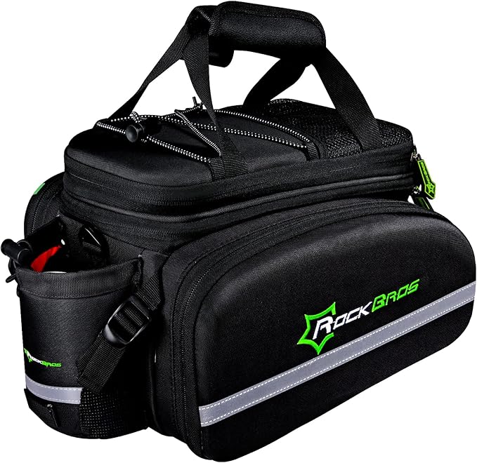 - Versatile & Portable: Expandable double side bike panniers are hided by zippers and available when needed. You can unzip the expansion and fit clothes and shoes in the trunk bag. There are also shoulder and hand straps for carrying the rockbros bike bag with you.