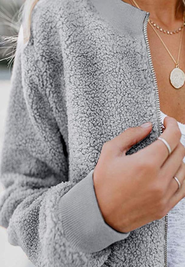 • DESIGN: The fuzzy fall jacket features soft and warm fleece, long sleeves, zipper closure, ribbed hem cuffs, lightweight lining and two pockets, casual relaxed loose fit, is a stylish and classic bomber jacket.