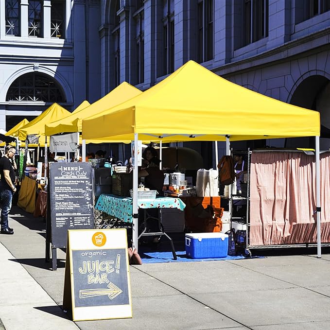 Pop Up Canopy Tent 10x10 for Outdoor Heavy Duty Commercial Instant Sun Shelter,with Wheeled Carry Bags,4Ropes and Stakes and 4 sandbags,Yellow