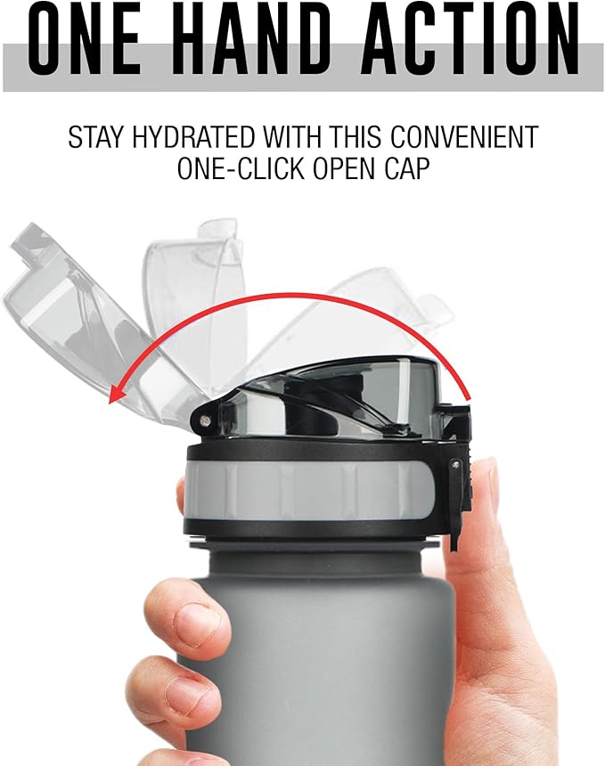 - QUICK AND EASY ACCESS: Stay refreshed with minimal effort. Our sports water bottle features a one-click open cap and a fast-flow wide mouth, enabling quick and convenient drinking. Ideal for staying hydrated during intense workouts or while hiking, this bottle ensures you can quench your thirst swiftly and get back to your activity with no downtime.