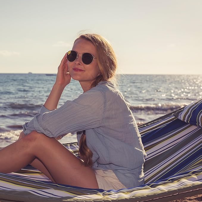 - Comfortable and Non-fading: Two-layer quilted polyester fabric with poly fiber filling which is cozier, best for camping and outdoor activities. Compared to other quilted hammocks, it will not fade after long-term usage. A polyethylene-stuffed head pillow offers superior comfort