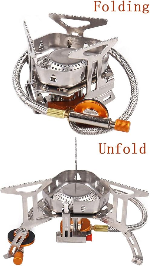 - Sturdy material: Thicker anti-slip stainless steel supports accommodates for up to diameter of 8" pan/pot to use in more stability and balance. All of our stoves are shipped after the professional valve-testing, ignition-testing and stability-testing.