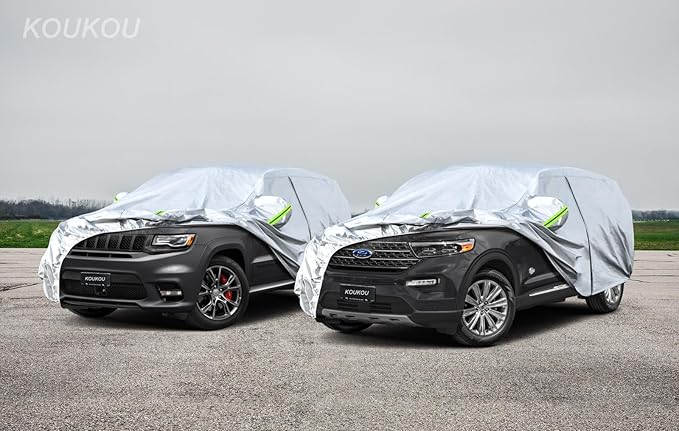 - ❰210D Oxford Material❱ ⎯⎯ KouKou vehicle cover adopt newest secure materials.1800MM water pressure keep the cover 101% Waterproof, great for rainproof snowproof in winter. Silver coating is good at sunproof, anti-Uv and keeps cool in summer. Anti-aging agents make the cover more durable than other similar covers.