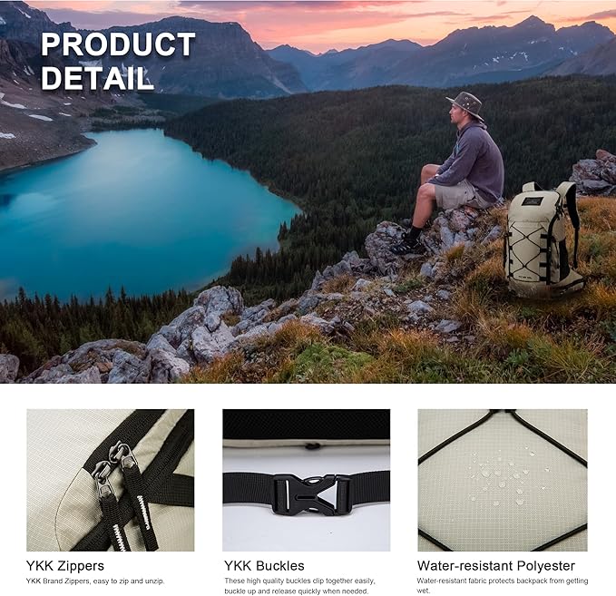 • 【Durable Material】: This 35L ​​hiking backpack​​ is made of durable polyester and is easy to maintain. The zippers and buckles are all YKK, which is smooth and not easy to fall off.