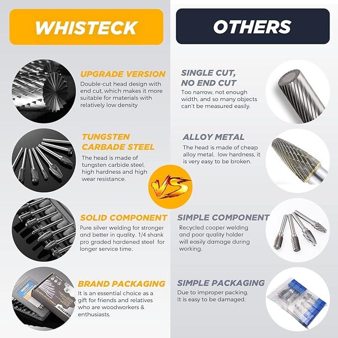 - 【EXQUISITE PACKAGE】: Our tungsten carbide burrs are packed in a nice portable case, always keep neat and convenient. High texture box for shipping and protection, an essential kit for friends and relatives who are woodworkers & enthusiasts.