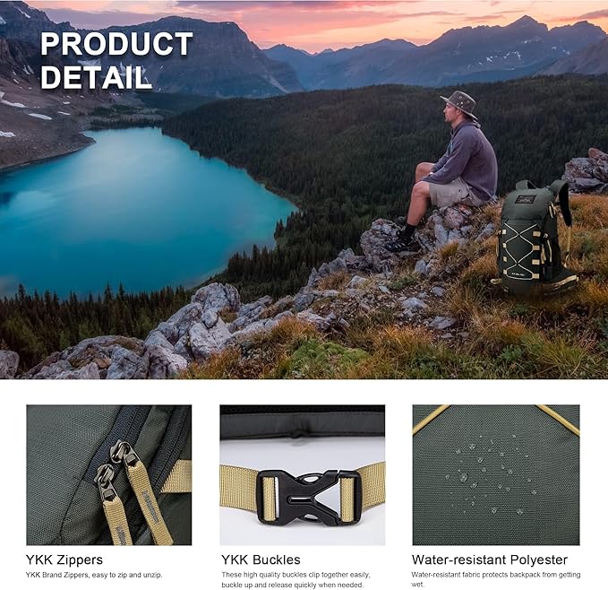 - 【Durable Material】: This 35L hiking backpack is made of durable polyester and is easy to maintain. The zippers and buckles are all YKK, which is smooth and not easy to fall off.