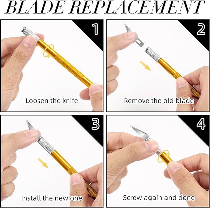 - The xacto knife is designed with a convenient blade replacement system that allows for quick and hassle-free blade replacement. You won't have to worry about the process of changing blades, making your cutting tasks more efficient and time-saving.