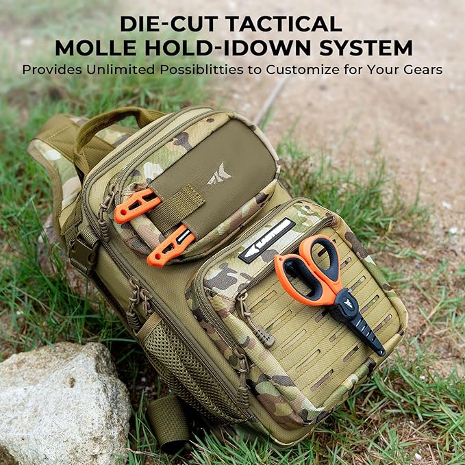 - TOUGH MATERIAL & MOLLE SYSTEM – The KastKing BlowBak sling backpack is made from tough 600D material for excellent long-term performance and reliability. Our water repellent coating on the inside provides extra protection to ensure your contents are protected from the elements. The die-cut tactical molle hold-down system provides unlimited possibilities to customize your BlowBak sling bag to suit your needs.