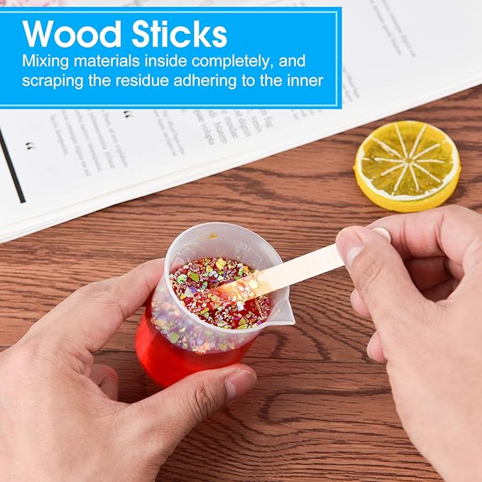 - Package includes: come with 12pcs 100ml/3.4oz graduated measuring cups and 50pcs wood craft sticks