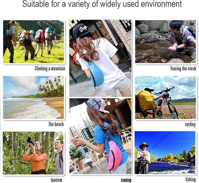 - 5、Suitable Occasion: Our waist pack is best for men, women, older,and teenagers to camping, jogging, running, walking, hiking, cycling, exercising, walking the dog. It is also a great gift for friends and family.A great ThanksGiving and Christmas Gift for Women Men Children and Family.Let's Hands-Free and enjoy a better festival time!