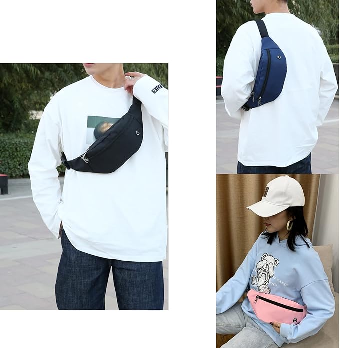 - 3、Many ways to wear this waist pack-You can wear in front of your waist,back on your hip,slant sross your chest or over your shoulder. Adjustable Waist Belt:The waist bag has adjustable nylon belt,fits for the waistline up to 20"-50"),making the bum bags belt ideal for men, women and teenagers.