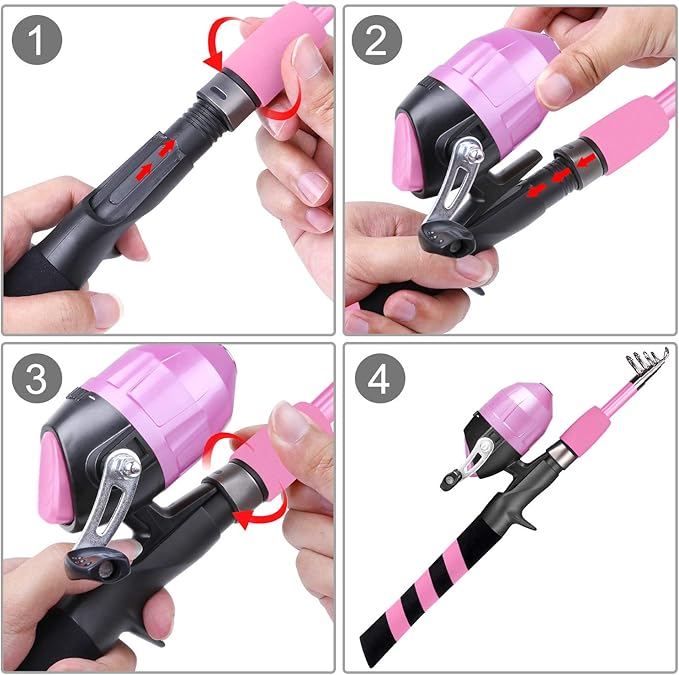 PLUSINNO Kids Fishing Pole, Portable Telescopic Fishing Rod and Reel Combo Kit - with Spincast Fishing Reel Tackle Box for Boys, Girls, Youth