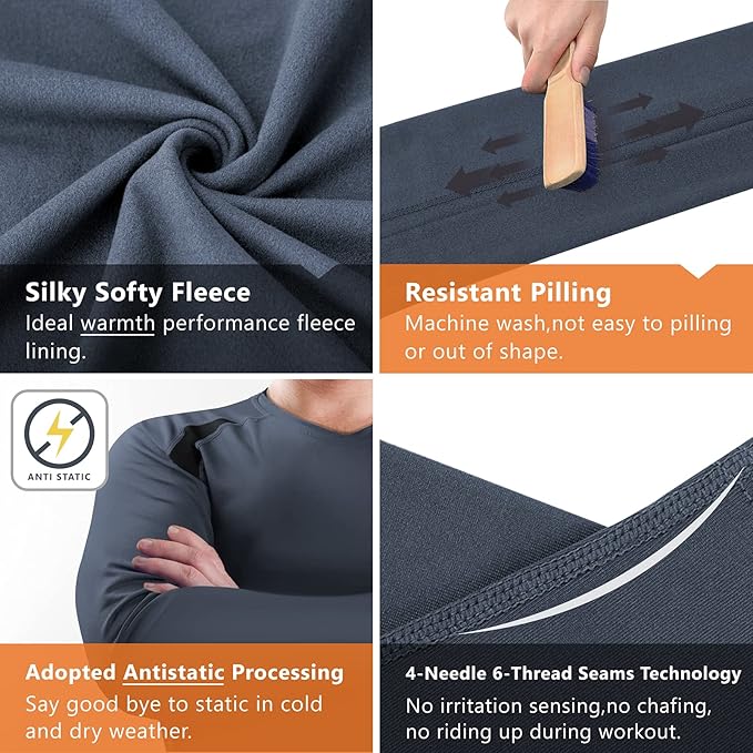 - Midweight thermal long underwear set for men, crafted from lightweight microfleece (not a bulky base layer), which will keep you snug and warm also to retain body warm, no matter what moderately cold-weather activities you’re undertaking, such hiking, running, and skiing. All thermal sets are adopted antistatic processing -Say good bye to static in cold and dry weather.