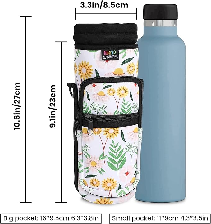 Nuovoware Water Bottle Carrier Bag,25oz/40oz/64oz Bottle Pouch Holder,Adjustable Shoulder Hand Strap 2 Pocket Sling Neoprene Sleeve Sports Accessories for Hiking Travelling Camping