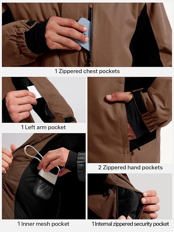 FREE SOLDIER Men's Waterproof Ski Jacket Fleece Lined Warm Winter Snow Coat with Hood Fully Taped Seams