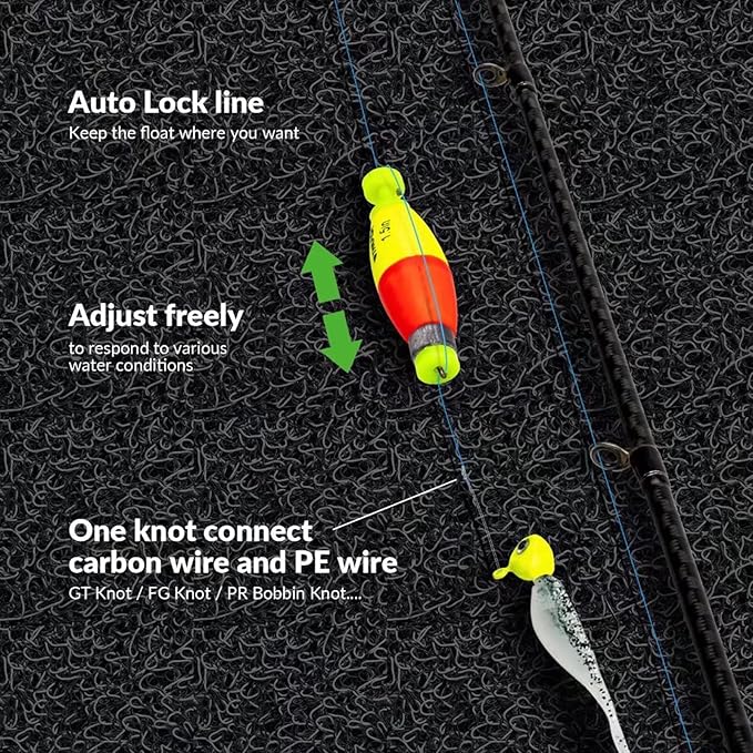 - EASY TO USE:There are spring butons on the up and dowm of the float body.Fishing floats are easy to push button and release heavy-duty springs that ensure strong line grip.
