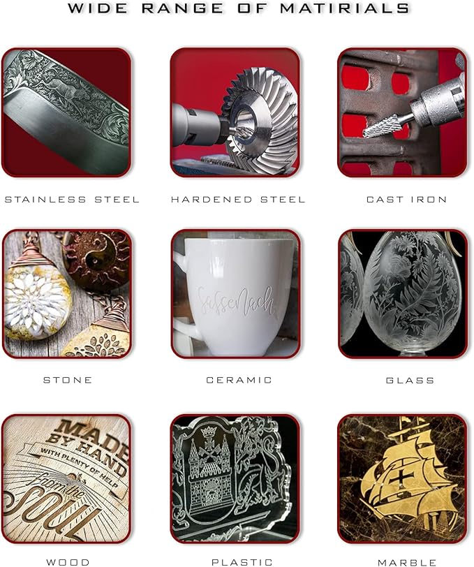 - Tungsten carbide - hardness, high strength, and durability. The service life is 8 times longer than that of HSS tool. Pilim double cut carbide rotary burr set can be used on all types of metals, including stainless steel and hardened steel, as well as wood, jade, marble, and bone.