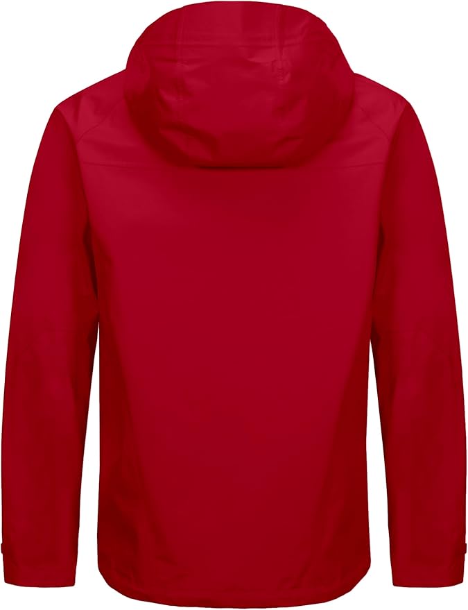 - WATERPROOF & WINDPROOF - The high performance rain jacket with a waterproof-breathable membrane and fully sealed seams will keep you comfortably dry on even the wettest days. An adjustable storm hood, hem and cuffs help seal out wind and rain.