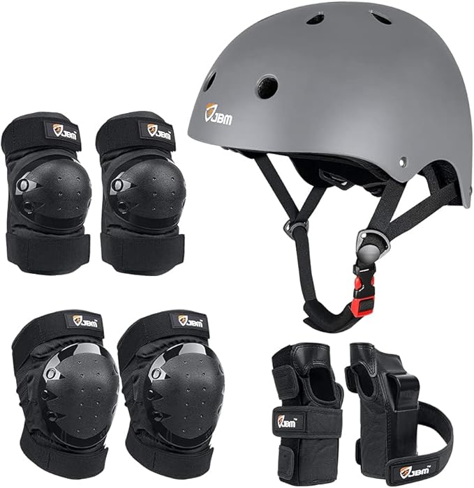 JBM Adult & Kid Skating Protective Gear Set for Beginner to Advanced, Skateboard Helmet Knee and Elbow Pads with Wrist Guards for Inline Roller Skating, Scooter, Skateboarding