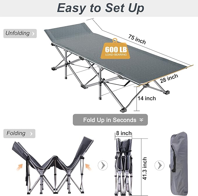 ABORON Folding Camping Cot for Adults, Double Layer 1200D, 500lb Capacity, Heavy Duty Guest Cot with Mat & Carrying Bag for Indoor & Outdoor Use