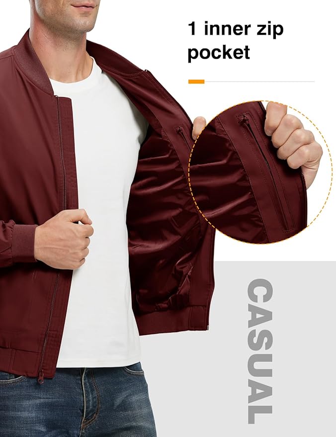 TBMPOY Men's Lightweight Bomber Jackets Light Windbreaker Casual Stylish Fall Golf Zip Up Dress Business Varsity
