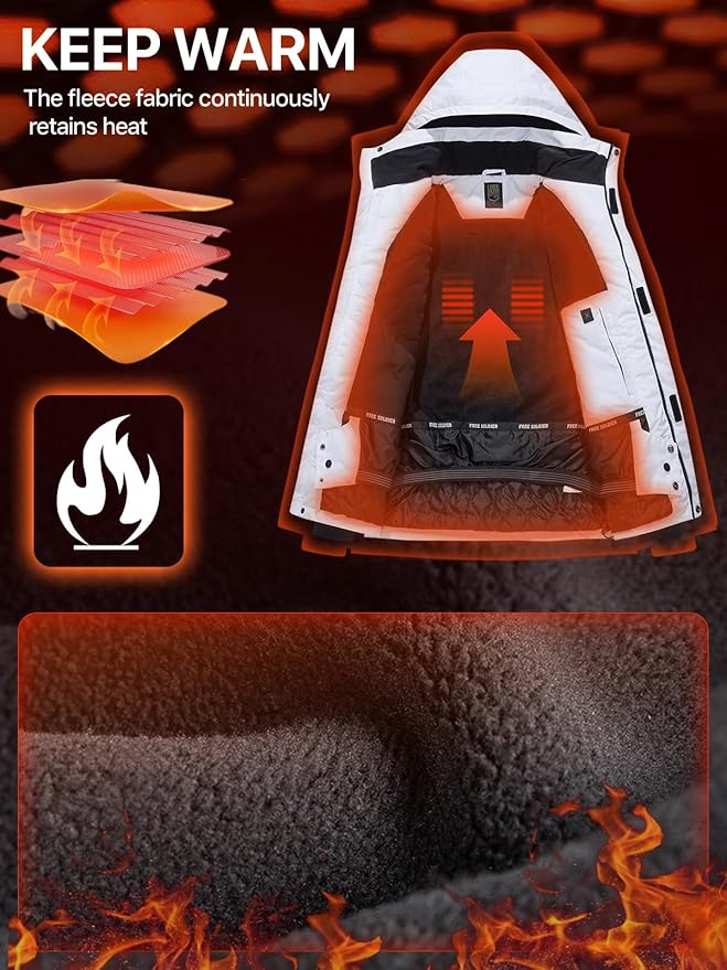 FREE SOLDIER Men's Waterproof Ski Jacket Fleece Lined Warm Winter Snow Coat with Hood Fully Taped Seams