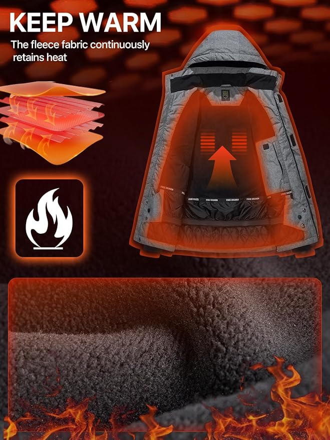 FREE SOLDIER Men's Waterproof Ski Jacket Fleece Lined Warm Winter Snow Coat with Hood Fully Taped Seams