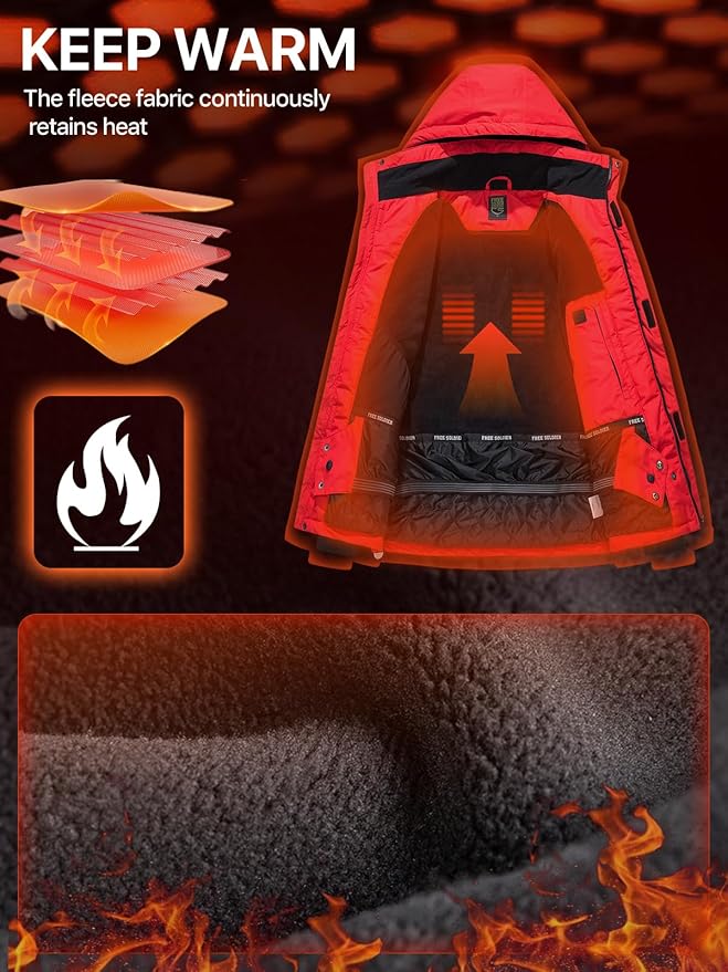 FREE SOLDIER Men's Waterproof Ski Jacket Fleece Lined Warm Winter Snow Coat with Hood Fully Taped Seams