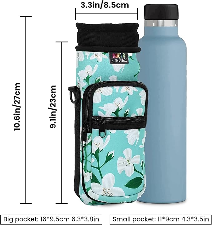 Nuovoware Water Bottle Carrier Bag,25oz/40oz/64oz Bottle Pouch Holder,Adjustable Shoulder Hand Strap 2 Pocket Sling Neoprene Sleeve Sports Accessories for Hiking Travelling Camping