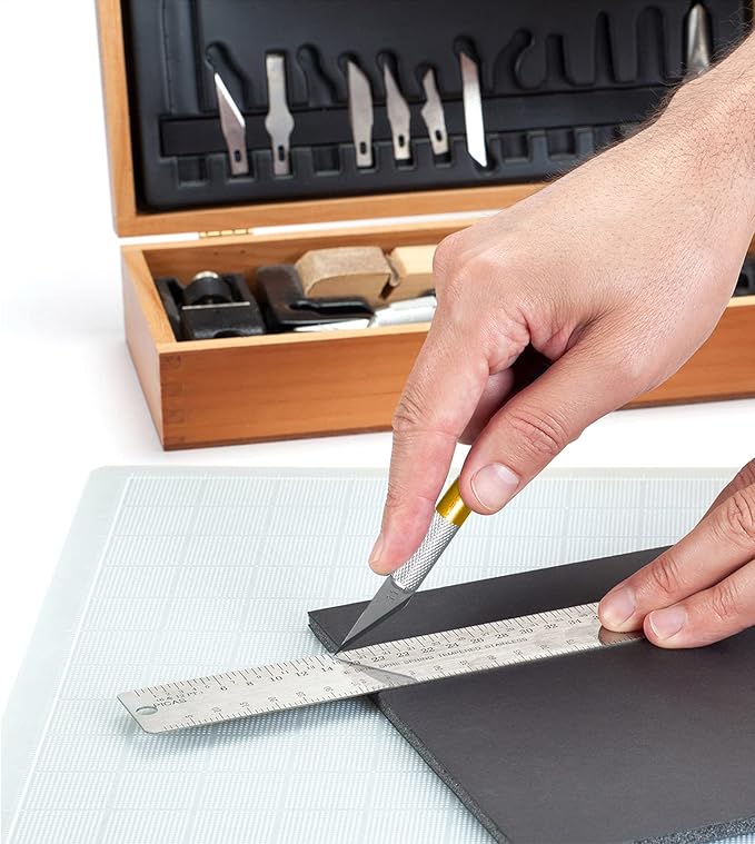 - Wide applications: precision knife with No.11 fine point blade, pointed enough for precise cutting, engraving, trimming and stripping from delicate to thick material, including paper, fabric, mat board, plastic, leather, metal, etc.