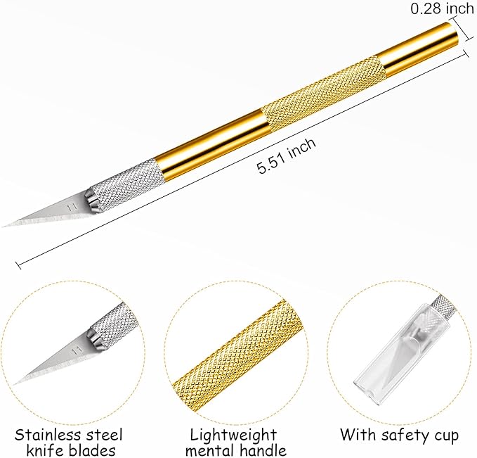 15 Pack Exacto Knife Set, Hobby Knife, Back to School Supplies Craft Knifes Kit for Art, Carving, DIY, Scrapbooking, Art, Cutting, Stencil(Gold)