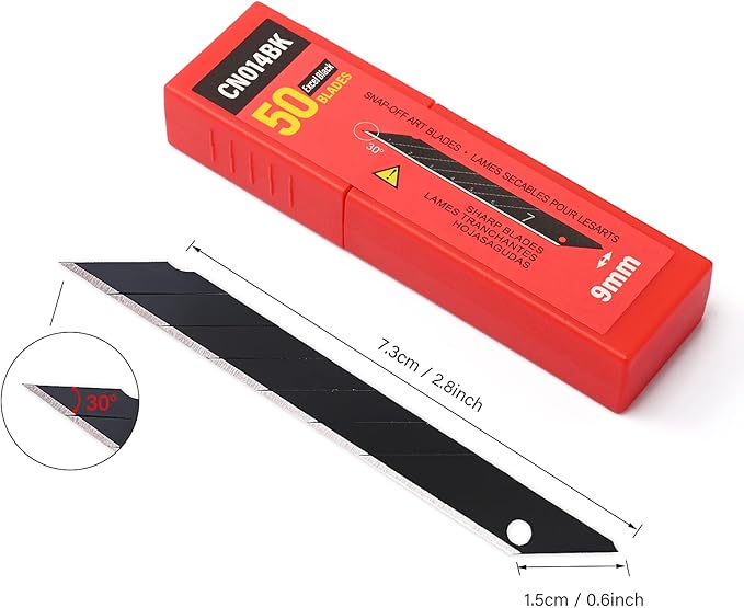 - 100PCS Snap Off Blades: The package comes with 100 pcs 30 degree 9mm replacement sharp blades.