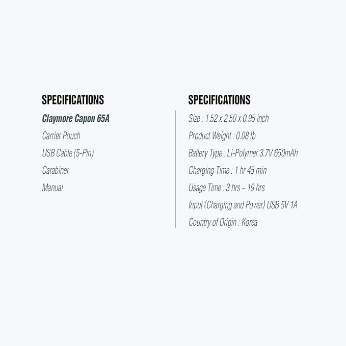 - EXTENDED RUNTIME WITH USB-C RECHARGEABILITY: The CAPON 65A+ boasts a 650 mAh battery for up to 19 hours of runtime, perfect for extended outdoor adventures. Enjoy fast USB-C charging in just 1.7 hours for quick readiness on the go. Includes a battery indicator so you’re never left in the dark.