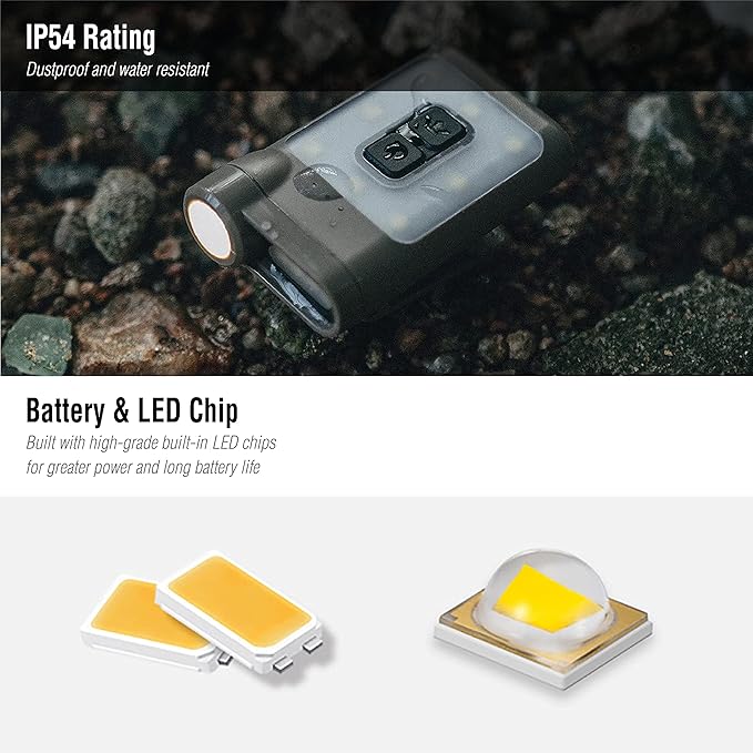 - WATERPROOF & ADJUSTABLE LIGHT ANGLE: Rated IP54 for dust and water resistance, this durable headlamp is built for the elements. Adjust the light's angle up to 180° for precise illumination, perfect for both work and play.