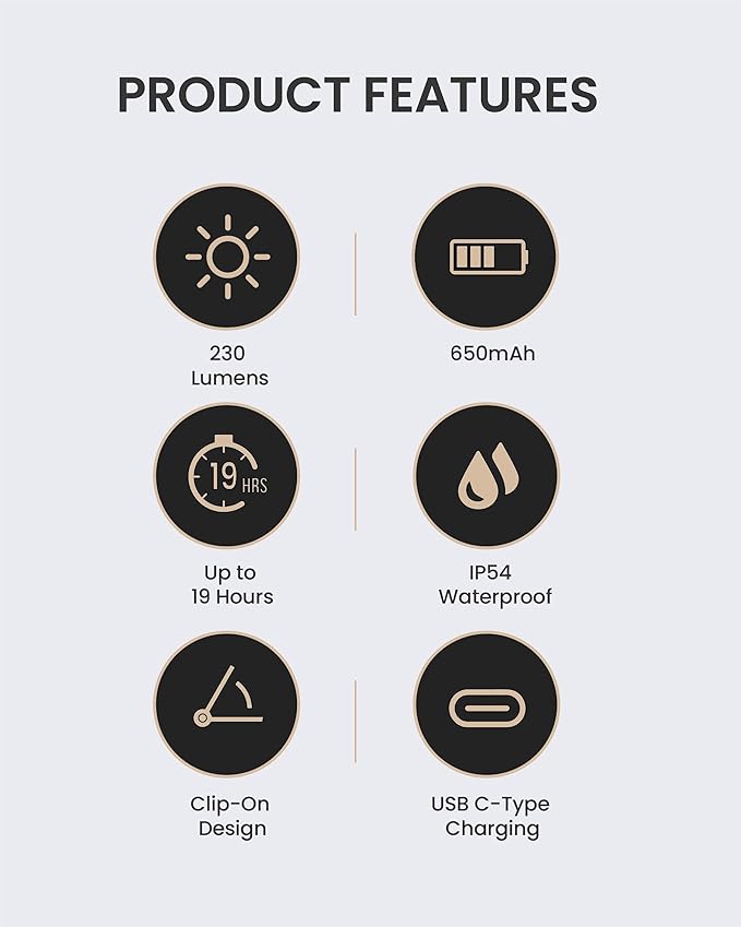 Claymore Capon 65A+ Black Ultra-Light Clip-On Cap Light – USB-C Rechargeable 230LM LED Compact Headlamp | 3 Modes IP54 Water-Resistant Up to 19 Hrs Runtime for Camping, Running, Outdoor