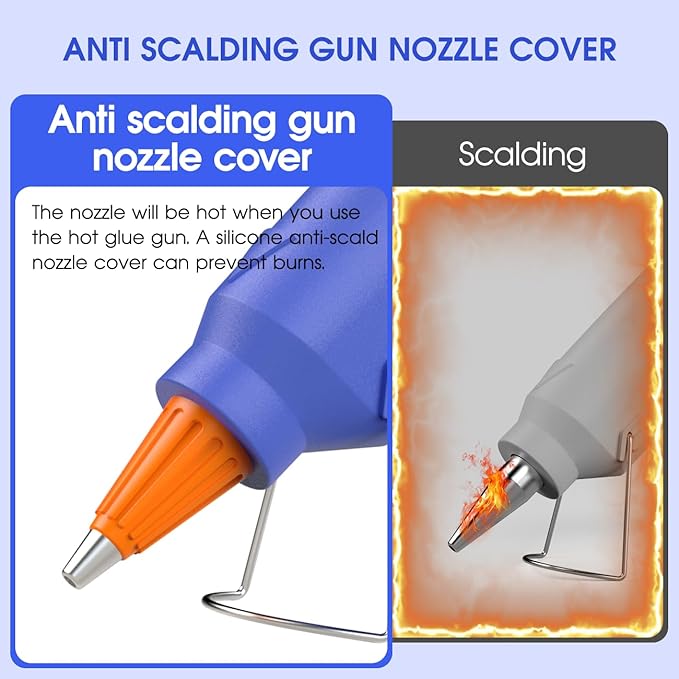 - 【Anti-drip and Heat Resistant】: Thermal Insulated Cap on hot glue gun is covered by heat-resistant rubber to prevent burns. Anti-drip nozzle releases glue smoothly with no drips or glops and is easy to control and place a small amount of glue.
