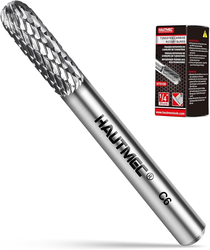 HAUTMEC Tungsten Carbide Rotary Burr Bit – 1/4" Shank, Double Cut Tungsten Rotary File for Die Grinder, Professional Grade, Suit for Metal Carving, Grinding, Engraving & Deburring - HT0198