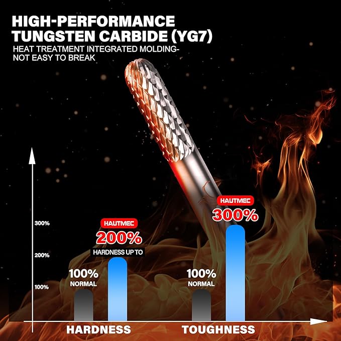 - 【Industrial-Grade Tungsten Carbide】Crafted from premium YG7 solid carbide and heat-treated for maximum hardness and strength. Engineered to withstand extreme workloads with 8X longer lifespan than standard HSS burrs—ideal for high-demand metal fabrication, machining, and industrial use