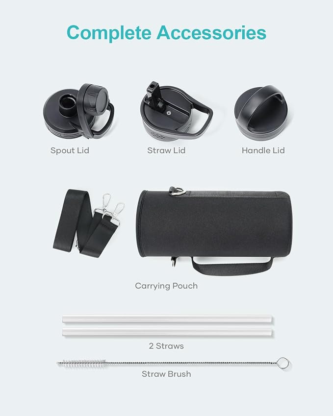 - Super Deal Combo: Buy 40 oz insulated water bottle, get 7 accessories. The pack includes 1 x carrying pouch, 3 x lids, 2 x straws, and 1 x straw cleaner. This bottle is ideal for camping, hiking, cycling, running, gym sessions, or outdoor work, ensuring you stay hydrated wherever you go.
