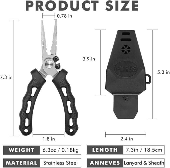 - DURABLE DESIGN - Ready for the harshest salt and freshwater environments, the TRUSCEND Pliers is corrosion resistant so that anglers never have to worry about rust or grime building up and ruining your plier. Complete with a hard molded custom sheath, the TRUSCEND Pliers will be the last set of fishing pliers that you ever have to buy.