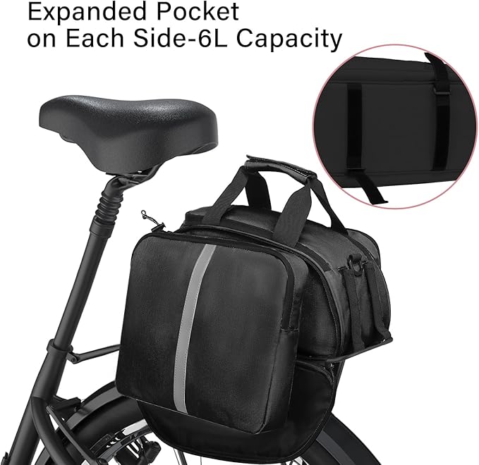 MOSISO Bike Rack Bag, Waterproof Bicycle Trunk Pannier Rear Seat Handbag Cycling Bike Carrier Reflective Backseat Cargo Storage Luggage Saddle Shoulder Bag with Water Bottle Holder&Handle