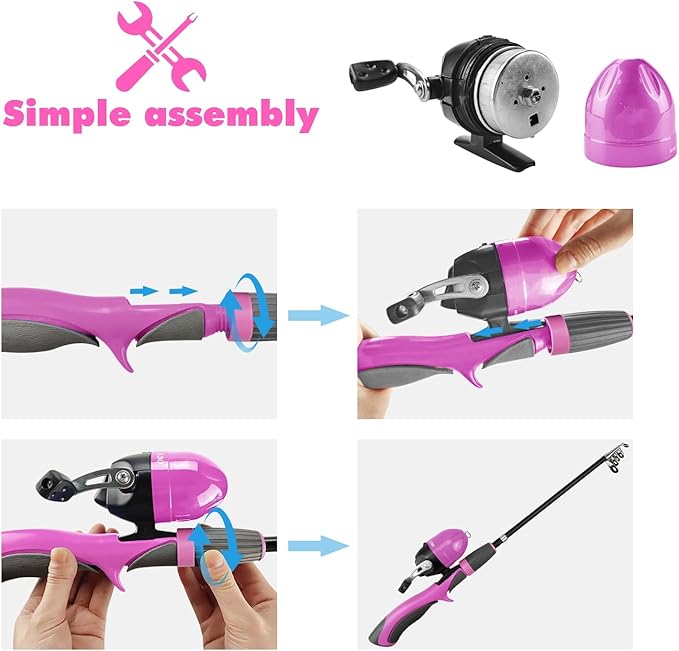 - EASY TO CAST FISHING REEL: The spinning reel is pre-spooled and has a cast button. No worry about tangles. Simply cast after releasing the fishing line by clicking the button. Make your fishing more convenient with collapsible fishing rod and provide you more chances to catch fish