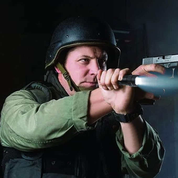 - Durable and Water-Resistant: The Feyachi rechargeable tactical flashlight is constructed from aircraft-grade aluminum alloy with a matte black finish, ensuring its durability, impact resistance, and IP65 waterproof rating.