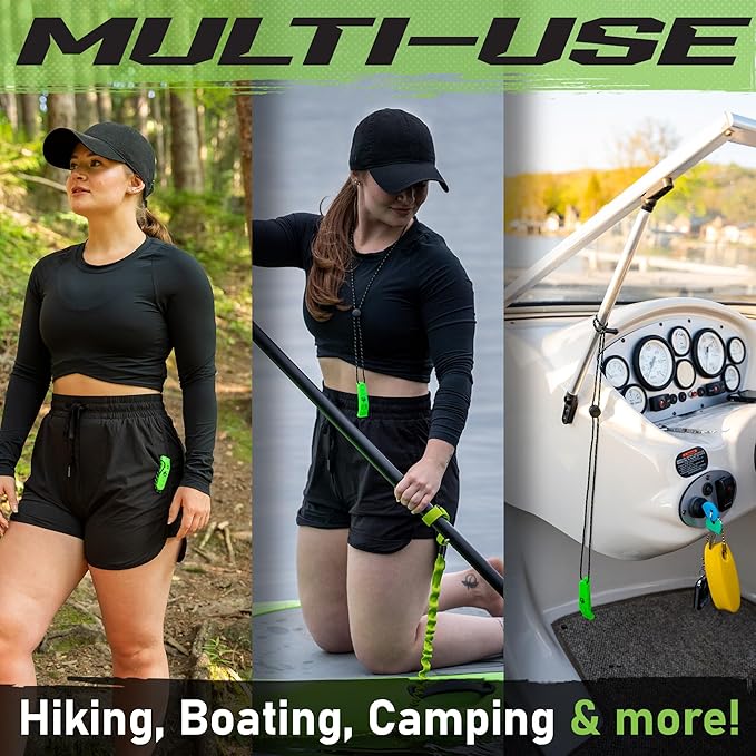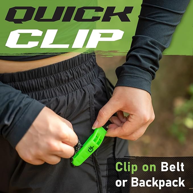- ππππ ππ πππππ: Our safety whistle features a built-in clip on the back and includes an adjustable 19β lanyard with reflective stitching for nighttime visibility. That means you can easily attach it to your belt, backpack or life vest strap in order to access it quickly in case of an emergency. You can also wear it around your wrist, neck or attach it to your boat.